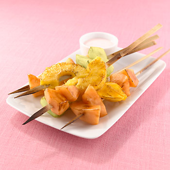 先把用的烧烤竹签在水里浸泡至少10分钟,同时准备好块状或者片状的哈密瓜、菠萝、芒果或其他新鲜水果;最后把这些都用竹签串起来,撒上薄薄一层红糖,然后放到烤箱里烤;每隔2分钟要翻转一下,直到水果变成棕色而且开始起泡泡。