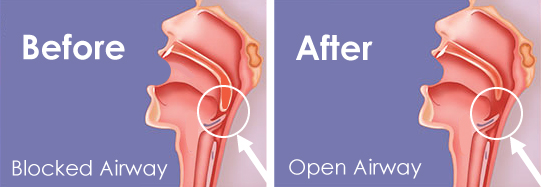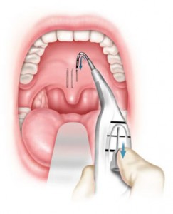 医生用二氧化碳激光器使悬雍垂(喉咙后部悬垂的软组织,俗称小舌头)缩短,并将悬雍垂旁边的软颚切去一点点。等切口愈合,周围组织会变硬。