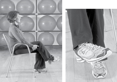 动作:右腿抬起,离地约20厘米;脚尖勾起朝向天花板;然后将小腿和脚尖指向地面。重复10次后换左脚重复10次,即为完成一组。