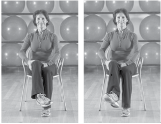 动作:抬起右腿右脚,离地面约20厘米;慢慢向内转动右脚尖,保持10~30秒;还原后慢慢向外转动右脚尖,保持10~30秒。然后换左脚重复拉伸,即为1次。3~4次即为一组。