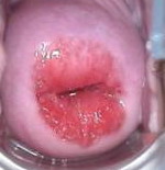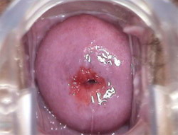 图5 宫颈口的大片鲜红色是女性成熟的标志