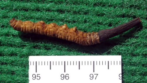 首先,通过关系,搞到了几根真正的冬虫夏草,外表及切开看看。(见图1)