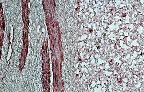 图2   红色是虫体的肌肉(平滑肌),浅蓝色竹节样细丝是霉菌菌丝