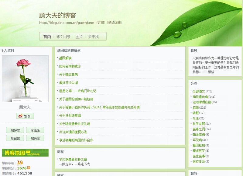 从那时候到现在,我一路上,一边走一边写,总共写了770多篇博文。其中90%与罕见病相关,记录了我行医的经验、体会,与患者的交流,还有患者的故事。