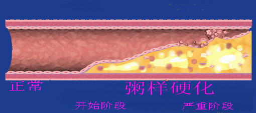 正常冠状动脉血管管壁是光滑的,管腔内是通畅的。当管壁中脂肪类物质堆积后,外观上如同粘稠的“粥样”,于是就出现了“粥样硬化”的名称。