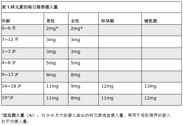 要想知道缺不缺、补多少、怎么补,就要先了解摄入量。美国国家科学院医学研究所、美国食品与营养委员会在膳食营养素参考摄入量(DRIS)中给出了锌的推荐摄入量(RDA)。
